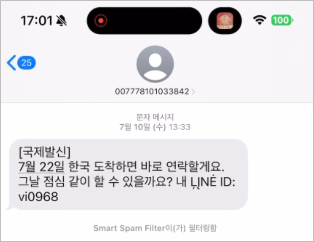 요즘따라 왜이렇게 스팸문자가 많이 오는지 모르겠습니다. 얼마전에는 주식과 관련된 것이 많이 왔었는데, 요즘에는 로맨스 스캠이 계속 옵니다. 이런것들도 최근에 유행을 따르는 것 같습니다. 처음에는 텔레그램으로 유도를 많이 했었는데, 이제는 라인으로 유도하네요.