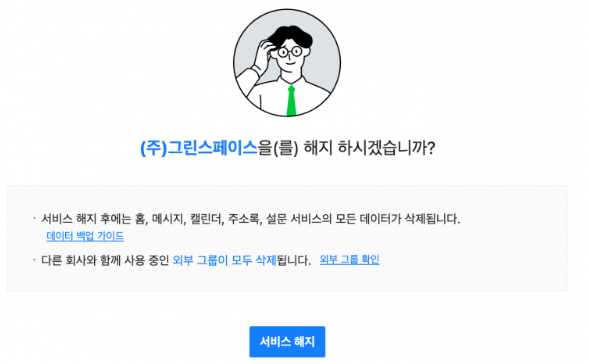네이버웍스 탈퇴 방법은 별도로 없고, 서비스 해지를 하시면 됩니다. 해지를 하기위해서는먼저 필요한 데이터를 백업해야 합니다. 백업해야 할 데이터로는 구성원 정보, 이메일, 개인 주소록, 캘린더가 있습니다.