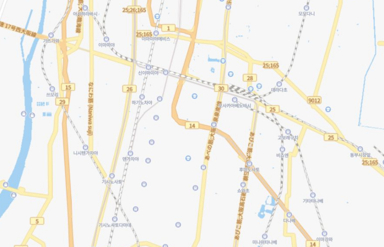 네이버맵에 익숙한 저로서는 이러한 시스템이 마음에 들지 않지만, 이 지도의 장점은 버스 정거장의 위치와 이름을 표기한다는 점입니다. 다른 서비스도 있긴 하지만, 외국인용 지도는 그리 좋지 않다는 평가가 많습니다