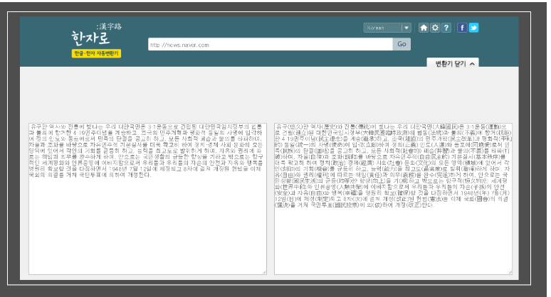 반대로 한글을 한문으로 바꾸어야 하는 경우도 필요할 수 있습니다. 그럴 때는 "한자로"라는 웹사이트를 이용해보는 것도 좋은 방법입니다. 내용만 입력하면 순 우리말을 제외하고 전부 자동으로 변환해주기 때문에 편리하게 사용할 수 있습니다. 위 링크를 통해 접속할 수 있습니다.