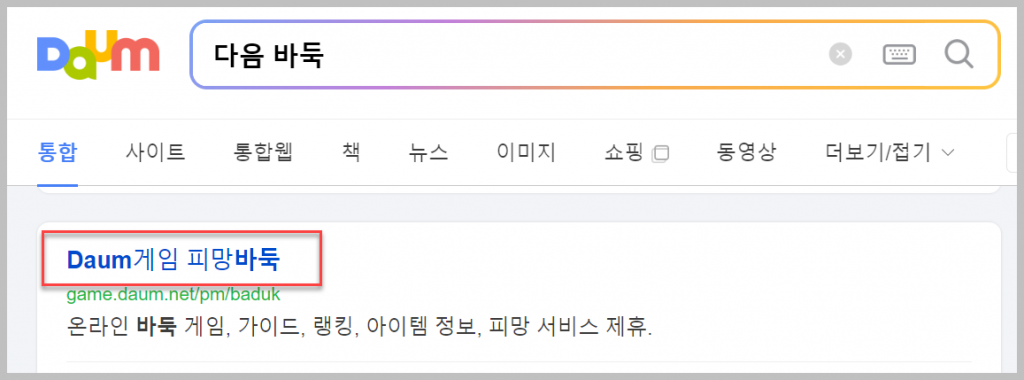 다음(DAUM)이나 네이버(NAVER)와 같은 대형 포털 사이트는 별도의 게임 카테고리를 운영하고 있습니다. 이런 포털 사이트에서 '다음 바둑'을 검색하면 마치 DAUM에서 직접 만든 것처럼 보이는 바둑이 나타나지만, 실제로는 Daum 피망 바둑이 검색 결과로 표시됩니다.