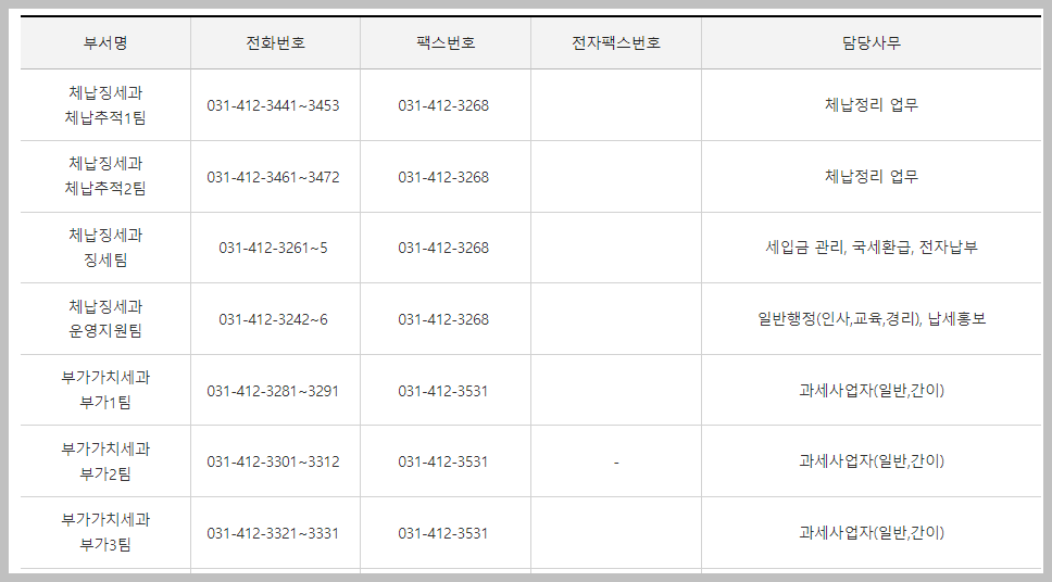 안산세무서 민원실 전화번호: 031-412-3200
