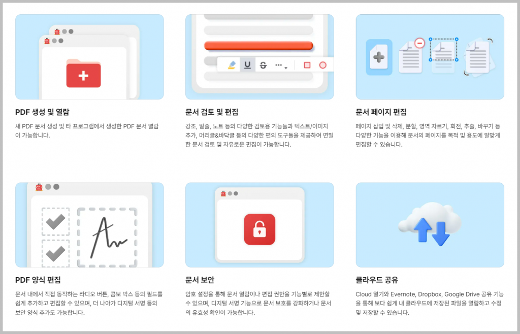 알피디에프는 PDF를 다양한 포맷으로 변환할 수 있습니다. 또한 파일 합치기, 용량 줄이기, 주석 수정 등 다양한 기능을 가지고 있습니다. 이러한 기능은 과거에는 유료 프로그램에만 포함되어 있었습니다. 하지만 지금은 알피디에프가 있으면 무료로 가능합니다.