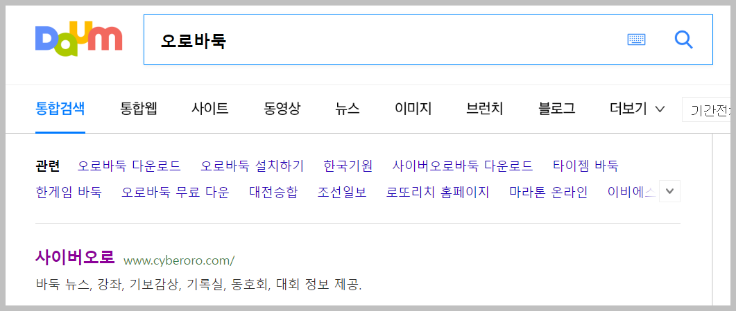 간단하게 네이버 다음과 같은곳에서 '오로바둑'이라고 검색을 하면 위와 같이 첫번째로 검색결과가 나오게 됩니다. 이것 말고도 나오게 하는 키워드는 많기는 하지만 이 검색어가 가장 편리한것 같아요.