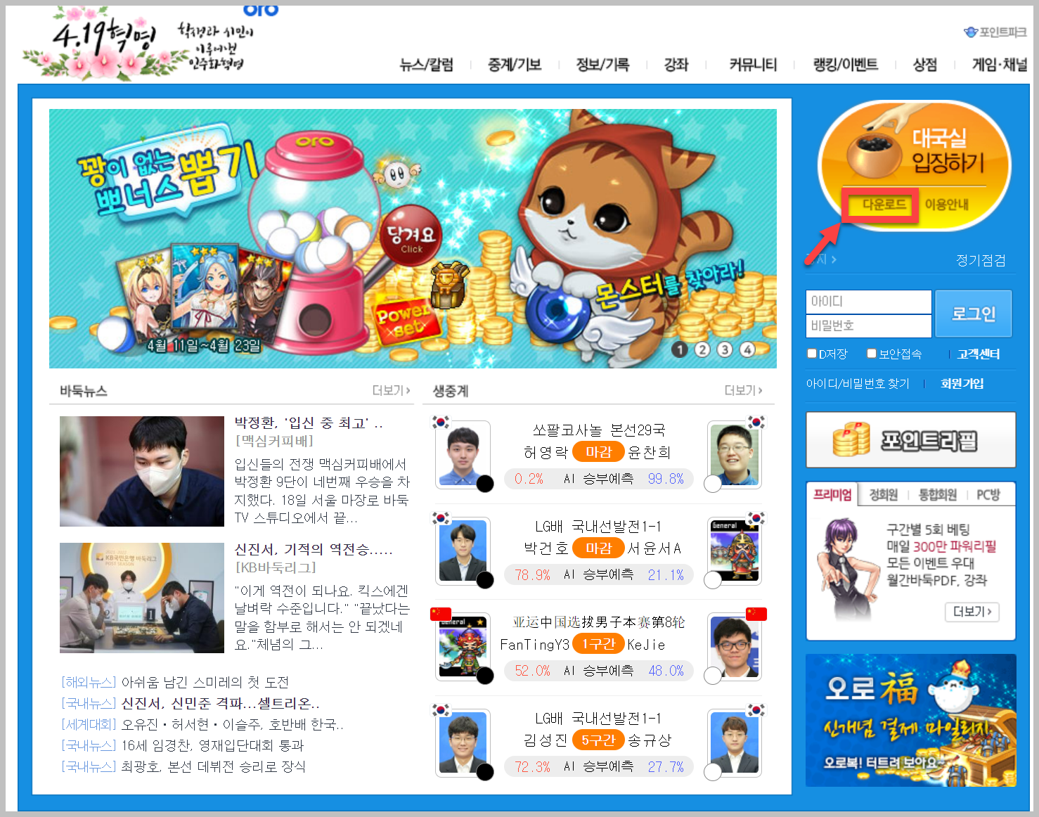 오로바둑 설치하기 위해서는 먼저 오로바둑 설치파일을 다운로드 하는것이 가장 먼저 해야겠지요. 그러려면 일단 오로바둑 홈페이지에 들어가야 합니다.