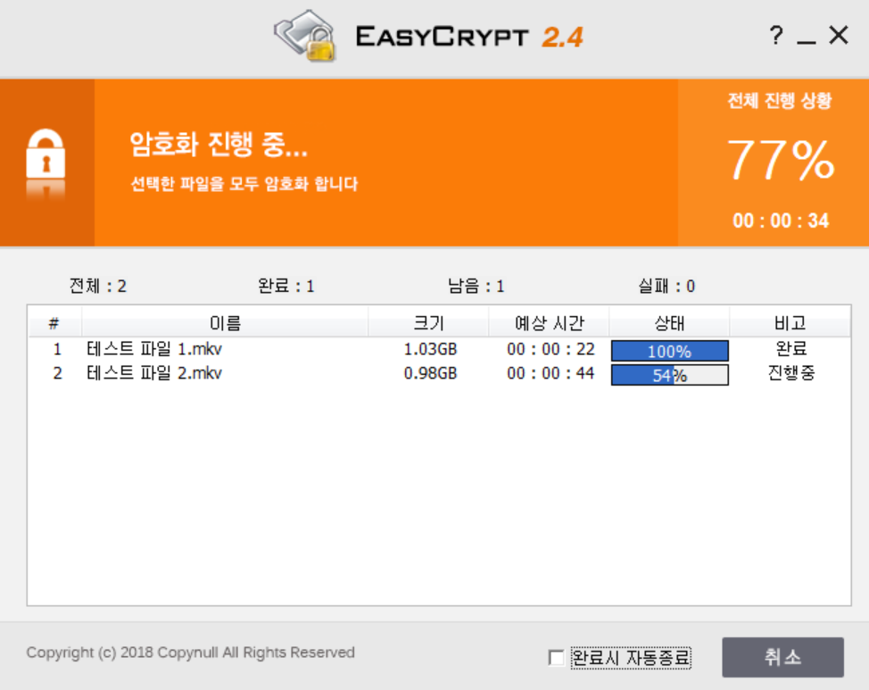 - 용량과 인코딩 언어와 무관하게 모든 파일에 대한 암호화와 복호화가 가능합니다.