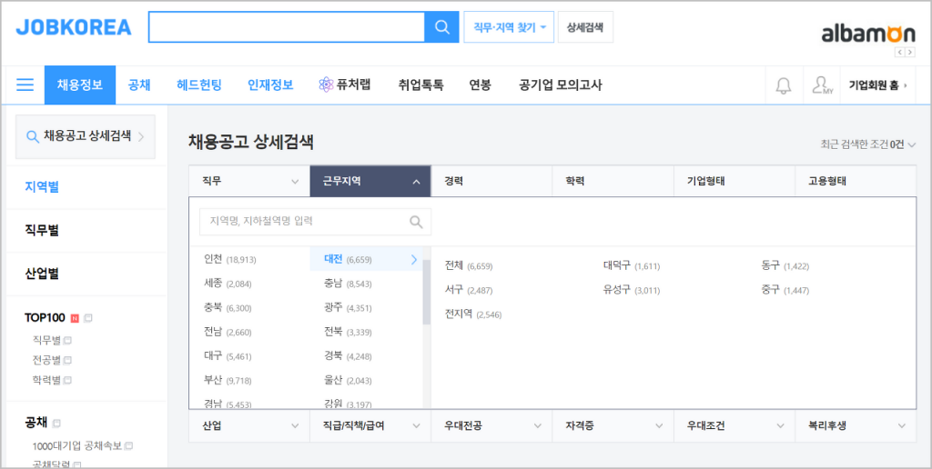 잡코리아 대전에서 구인구직 하기