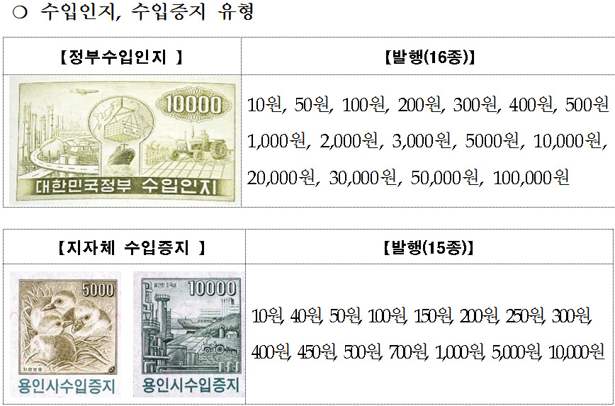 과거에는 위 사진처럼 수입인지가 우표와 같은 물리적인 형태로 존재했습니다. 그러나 2013년 이후로는 전자문서 형태로 도입되어 많은 사람들이 편리하게 사용하고 있습니다. 아무래도 실물인 경우에는 여러가지 복잡한 점이 많기 때문에 바뀐것 같습니다.