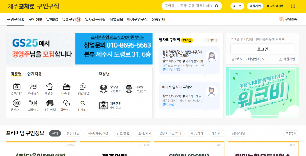어떤 주제의 포스팅을 해볼까 고민하다가 앞으로는 구인구직과 관련된 몇 가지 포스팅을 해보려고 합니다. 많은 사람들이 취업 관련하여 어려움을 겪는 것 같아서 몇 가지 사이트를 소개하는 것부터 시작하려고 합니다. 이번 포스팅은 제주 교차로 신문의 구인구직입니다. 제주도에서 취업을 하는 사람들에게 도움이 될 것으로 기대합니다.